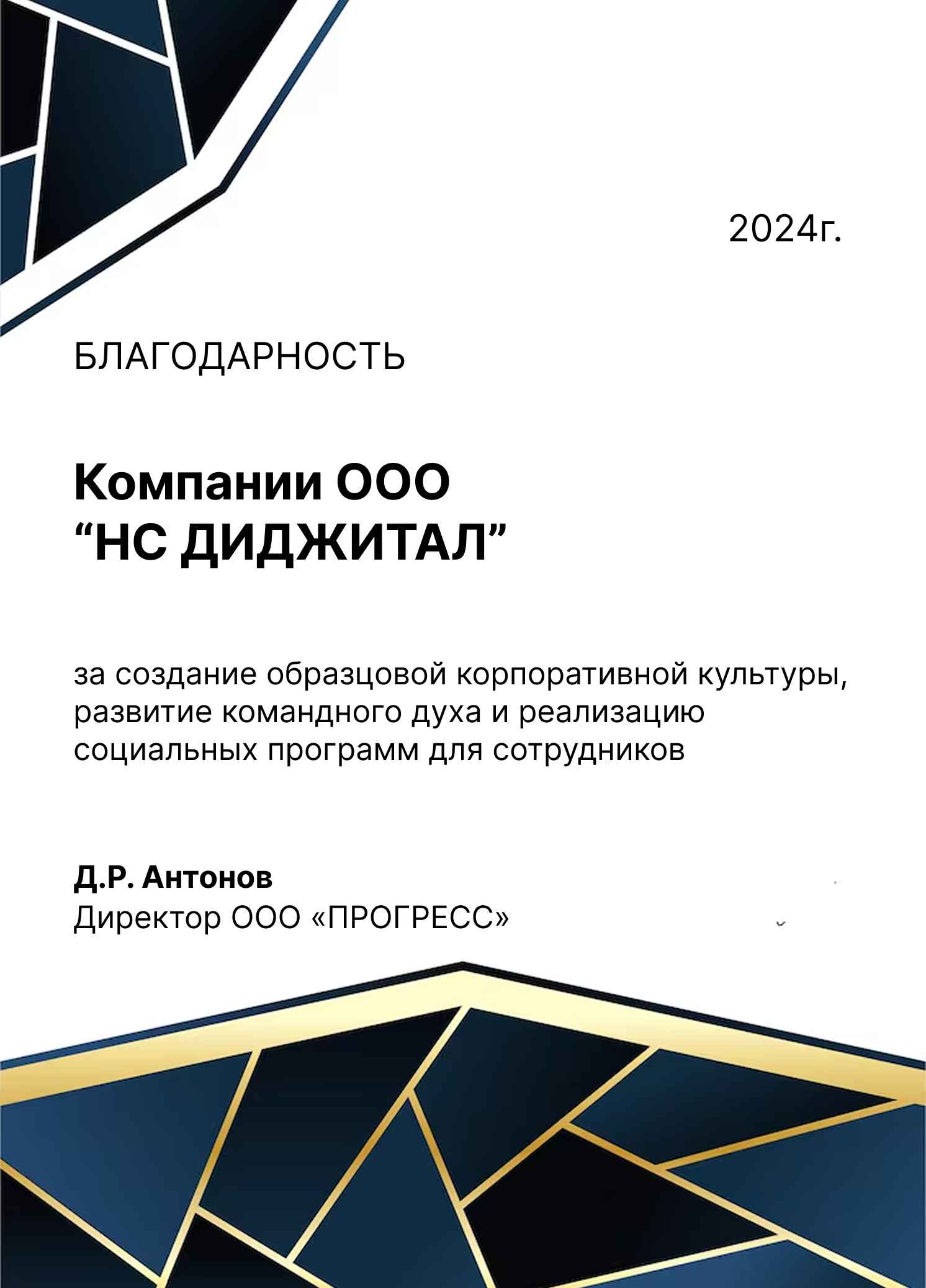 Благодарности компании НС Диджитал